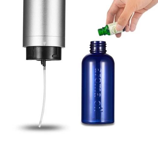 Scent diffuser machine adopts cold two-fluid atomization technology, the high-speed collision of cold air hits aroma oil into nanoscale mist, the machine sprays the mist out of the atomizer, the scent flows along through the air.